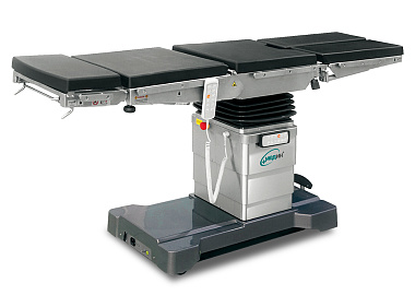 В основании стола находятся электроприводы, которые управляют всеми движениями панели: подъем-опускание, боковой наклон влево-вправо, Тренделенбург, анти-Тренделенбург. Трансформирование положений панели стола осуществляется от пульта дистанционного управления. Электропитание стола производится как от встроенных аккумуляторных батарей, имеющих возможность подзарядки так и от внешней сети переменного тока.
