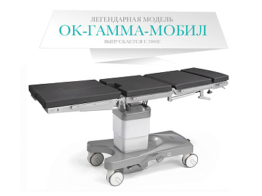Подъем и опускание панели стола ОК-ГАММА МОБИЛ осуществляется при помощи гидродомкрата ножной педалью. Управление ножными, спинной и головной секциями, а также продольными наклонами производится вручную при помощи газовых пружин. Специальная форма основания стола обеспечивает удобный свободный доступ медицинского персонала.