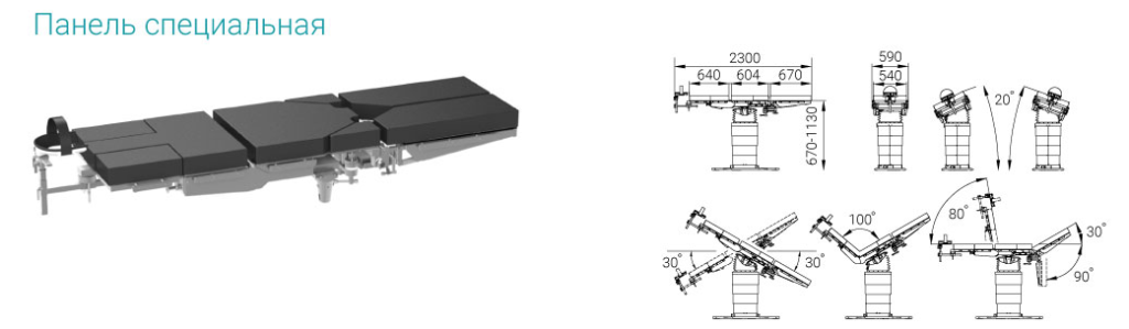 Специальная панель позволяет выполнять травматологические и ортопедические операции. Панель имеет спинную секцию для проведения артроскопии плечевого сустава. Есть возможность снимать сегменты панели при наличии пациента на столе. Обеспечивается удобное рабочее положение и хороший доступ к оперируемой области.