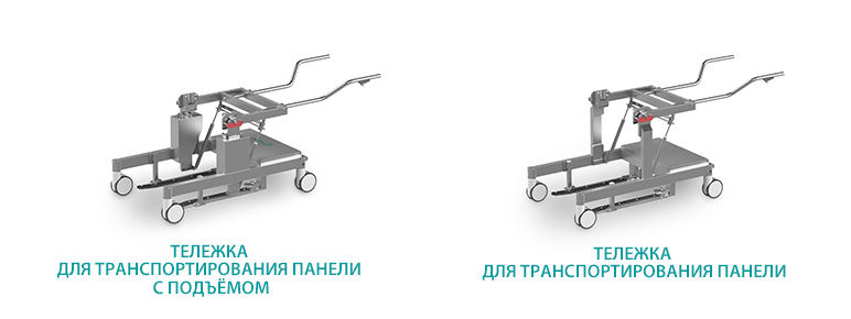 Тележки для транспортировки - удобное решение для перемещения панели в операционной, помогает уменьшить нагрузку медицинского персонала.- Тележка может быть с функцией подъема и без нее.